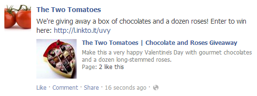 For example, when sharing a link to your promotion, use an image and link combo instead of sharing just the link. This will double your Edgerank and garner more attention in the news feed.